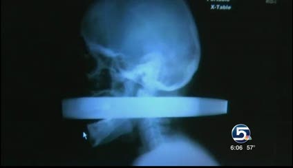The X-ray taken of Linn's head right after his car crash five months ago is stunning. You can clearly see the pipe piercing his head.
