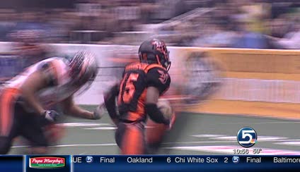 On the second play of the fourth quarter, Utah recovered another Milwaukee fumble and once again capitalized with a Grady to Boone touchdown to take their first lead since 4:27 remaining in the first quarter. Milwaukee snagged the lead back with a one-yard rushing touchdown by WR Brent Holmes (5-9, 170, Texas A&M-Kingsville). The Mustangs extended their lead to six with only 16 seconds remaining, giving the Blaze one last drive. On the final play of the game, Milwaukee DB Kelvin Rogers (6-1, 182, Minnesota State) intercepted a pass intended for Boone in the end zone, returning it for a touchdown. Milwaukee handed the Blaze their first home loss of the season with a final score of 65-53.