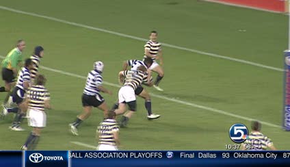 Apenisa Malani put BYU on the board in the 37th minute with a try. Cal answered on a penalty kick to make the score 13-7 at halftime.