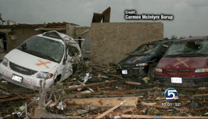 The group considered stopping at a Home Depot on Range Line Road to take shelter from the tornado, Colby said, but decided to remain driving down the road. The group later learned from a radio broadcast that the Home Depot they had planned to take shelter in had been hit hard and was now rubble.