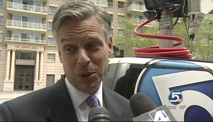 Back only weeks from serving as U.S. ambassador to China, Huntsman said he expects to make up his mind soon.