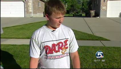 After prying the grate loose, Chandler Zimmerman climbed into the 2 ½ foot diameter pipe and started scooping up the tiny ducks. However, one of the ducks got away, so Chandler went down a manhole and crawled about 300 feet under the street to locate the last duckling.