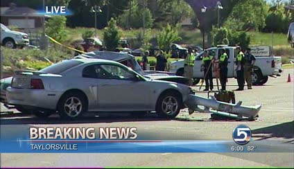 The man was allegedly driving his west on 5400 South, ran the red light, struck a southbound vehicle on 2700 West, then veered off and struck Eyre's vehicle, which was northbound on 2700 South, Snodgrass said.