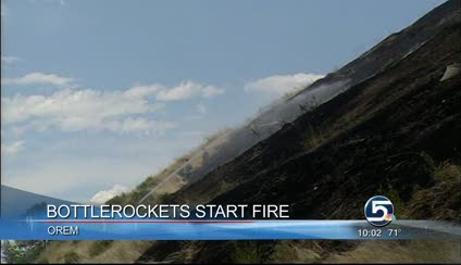 OREM — Fire investigators say a small brush fire at 1600 North and 800 East in Orem Monday was started by bottle rockets.