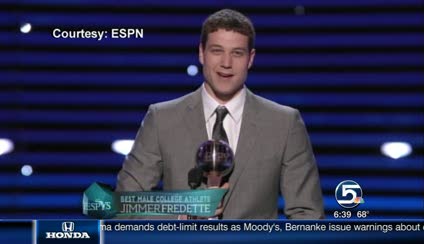LOS ANGELES -- BYU's Jimmer Fredette picked up a big honor Wednesday night at the ESPY Awards. He was nominated for and won the best college male athlete of the year award.