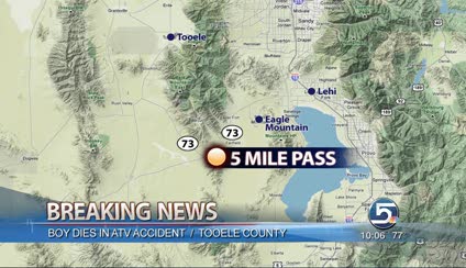 FIVE MILE PASS, Tooele County — A 10-year-old Eagle Mountain boy is dead after the ATV he was riding on rolled over during a steep hill climb.
