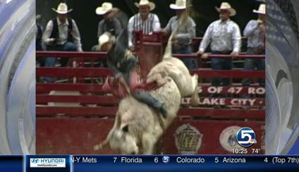 The Thatcher man climbed on his bull, Foul Play, and then just like every other bull rider except one in Friday's Days of '47 Rodeo, he was thrown to the ground before the eight-second whistle sounded.