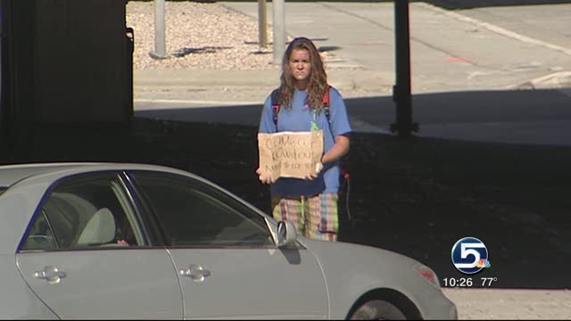 "We're standing on freeway exits, entrances and nosiness fronts and we're asking for money," said Andrew Hagedorn, 18. "We're not telling them we're not homeless. We're just asking them for the money."