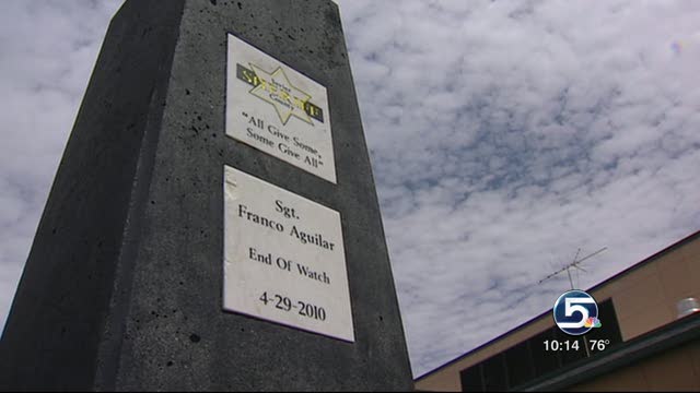 The memorial is for Sevier County Sheriff's Sgt. Franco Aguilar, who was killed April 29, 2010, while helping a motorist on I-70 who lost control on the Fish Creek bridge. While he was outside, another driver was going too fast for the icy conditions, lost control, hit Aguilar and sent him some 250 feet down off the bridge to his death.