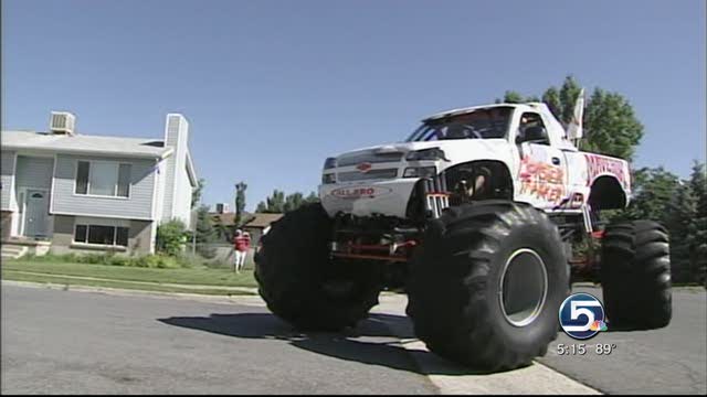 Daniel Allen loves monster trucks and with help from the Angel's Hands Foundation of Utah, along with Rocky Mountain Raceway, two huge monster trucks rumbled to a stop right in front of his house.