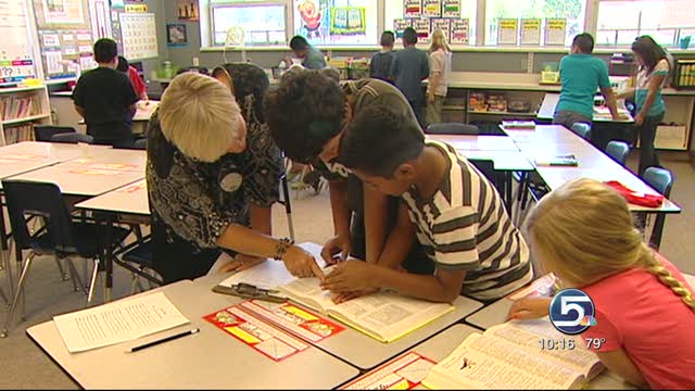 Tuesday was only the fourth day of school for students at McPolin Elementary School, but already Linda Dugins' class has written and printed out poems. It's an assignment that would normally never take place this early in the year.