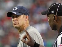 “Our guy has won a lot of games for us. He is a true junior, so he is a year older than Jake Heaps is. They are similar in styles. They are both pocket guys, and Heaps has a very strong arm that is one of his main attributes. I don't know enough about him personality-wise to make any more statements, but our guy is a student of the game and knows where to go with the ball. He has an understanding of the game as a whole. He came in as a bright young quarterback but has matured and understands the intricacies at the college level. He has an exceptional football IQ. I believe both guys are playing in correct schemes for them.”