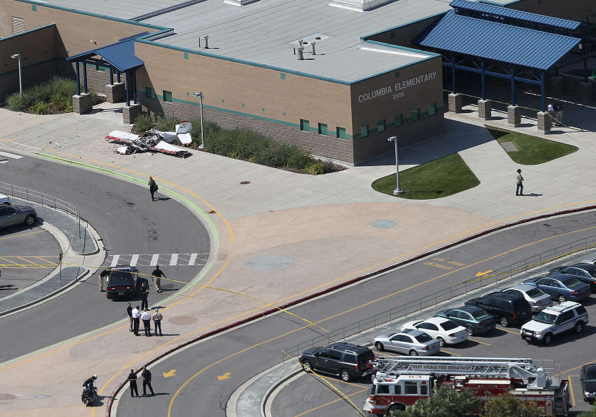 She said there was no smoke or fire, just a crumpled plane with a broken wing. Children and teachers were at recess on the nearby playground when the crash occurred.
