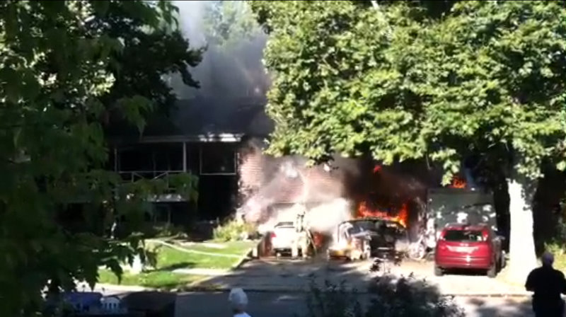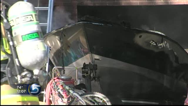 Investigators say the fire started in the garage. Flames heavily damaged a boat and RV.