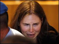 Wearing a brown cardigan and black leggings, with her hair in a ponytail, Knox sobbed at the news conference and held her mother's hand as her lawyer Theodore Simon said her acquittal "unmistakably announced to the world" that she was not responsible for the killing of Meredith Kercher.