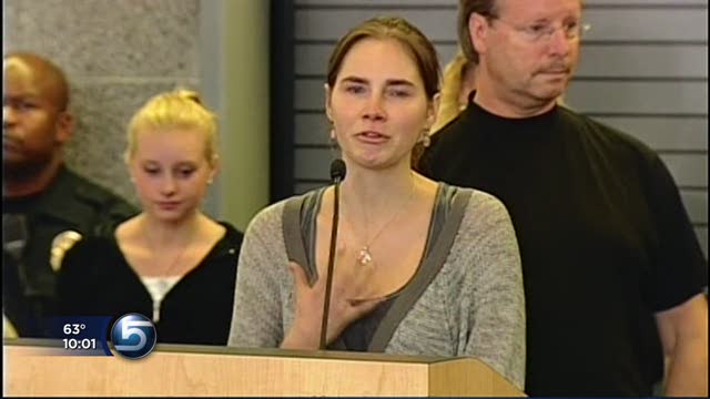 After her parents offered their thanks to Knox's lawyers and supporters, Knox spoke briefly, saying, "They're reminding me to speak in English, because I'm having problems with that."