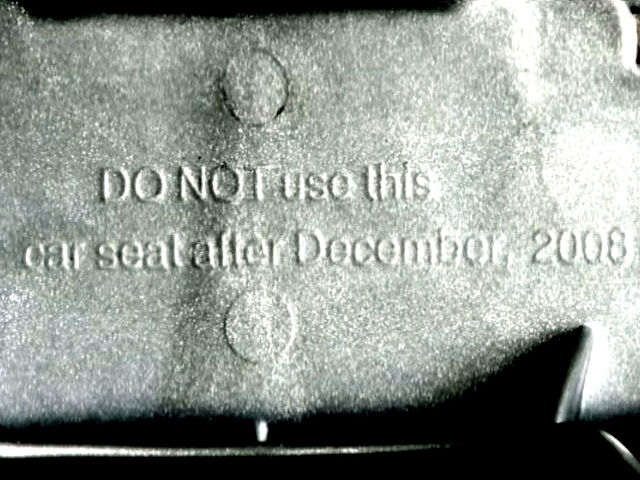 She checked the seat, and embedded into its plastic frame was a warning: Do not use this car seat after December 2008.