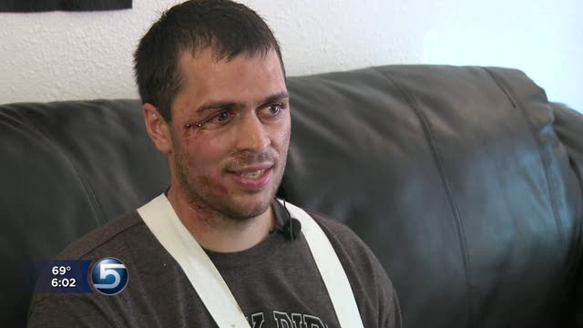 Heaton -- a University of Utah student who also serves in the National Guard -- was extremely banged up after the accident. He has a shattered elbow, a fractured arm and numerous other injuries. He still has stitches in both legs, but says he's happy to be able to walk.