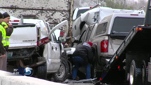 "As I was assisting him with that, another car spun out, up back here," said Trooper Eric Prescott, of Utah Highway Patrol. "And then it just kind of created a chain reaction. Another car came in, another car came in, and they just kept piling up on the icy bridge."