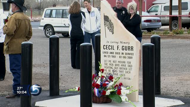 Saturday's dedication included an American Legion color guard and the playing of taps by two Roosevelt police officers. Gurr's sons, Slade and Dax, also addressed those who gathered to pay their respects.
