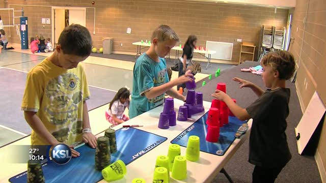The class joins kids at about a dozen Utah schools in a new world record for the most people speed-stacking cups at the same time. It was a worldwide effort with schools from more than a couple-dozen schools participating.