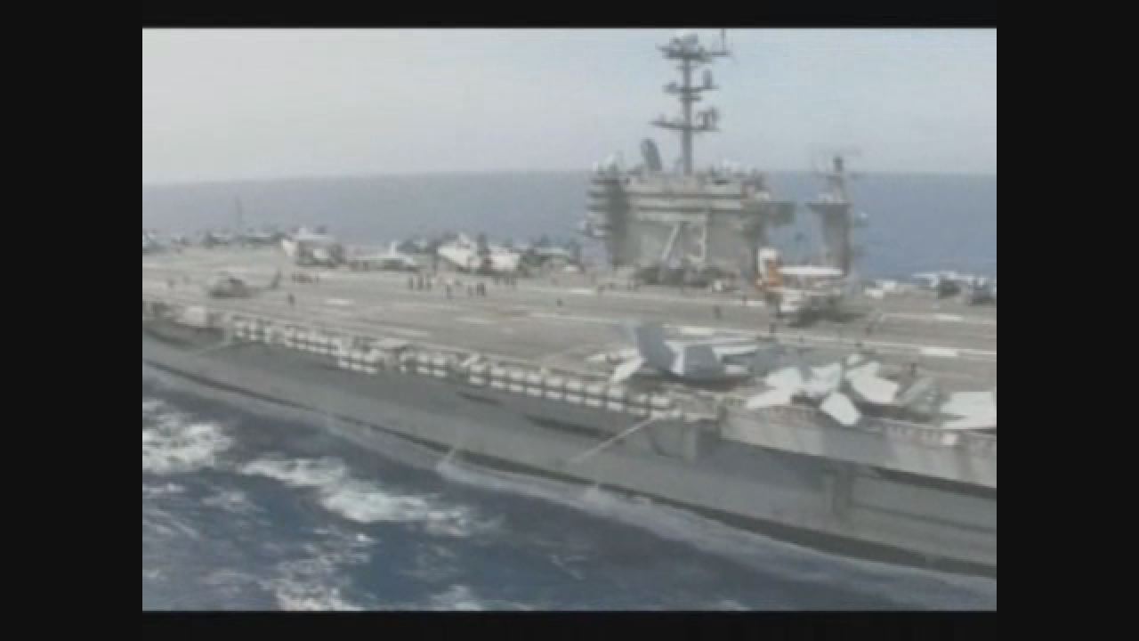 "We're out here to ensure that international waters stay international," said Lt. Cmdr. Dave Hecht on board the USS George Washington, the aircraft carrier charged with patrolling parts of the Western Pacific.