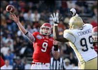 Then, just a few moments before the second half started, Wynn took some practice snaps and realized that he couldn’t play the second half. Literally, in a matter of seconds the Utes had to make a colossal adjustment to their offense. As the ball flew through the air from the second half kickoff, offensive coordinator Norm Chow cut out half the playbook in an attempt to simplify the offense for backup quarterback Jon Hays.