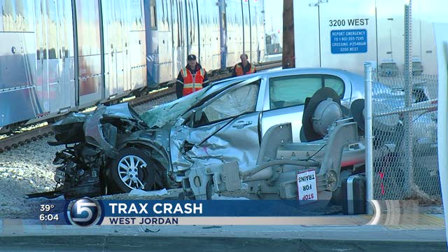 The accident happened about 9:20 a.m. at the intersection of 8600 South and 3200 West. A driver traveling east on 8600 South made a right turn at the crossing and was hit by a westbound train, said West Jordan Police Sgt. Drew Sanders.