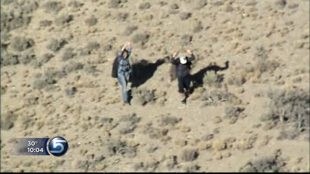 The couple was spotted in a remote area about five miles off of I-80 near Oasis, Nev. They were about two miles from the Big Springs Ranch. When officers approached, the couple were carrying unknown objects that officers ordered them to throw to the ground.