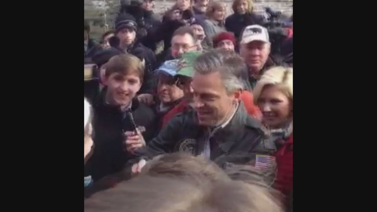 Huntsman faced a crush of reporters and cameras at every stop Monday. The campaign theme has become "Country First,"referring to his Ambassadorship to China. But he knows it's a long road ahead