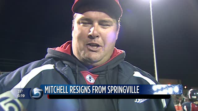 SPRINGVILLE - Scott Mitchell resigned Friday as Springville Red Devils head football coach to spend more time building his software company.