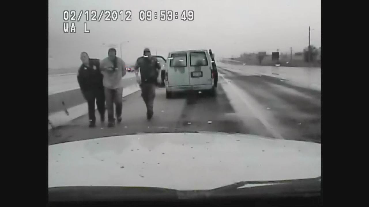 Orem Police received a call on Sunday morning saying that a man and a woman were stealing scrap metal from US Synthetics on 1200 South and 1600 West. After leaving the scene, the couple was spotted on University Parkway, where police attempted to stop them. The driver, identified as 39 year-old Howard Talman, sped onto I-15 northbound, reaching speeds nearing 95 miles per hour. Police chased the van for more than 20 minutes through snow and rain, catching the entirety of the chase on a camera mounted on the dash of the police car. Police laid a spike strip down, slowing the van down as Talman continued on flat tires and later, rims.