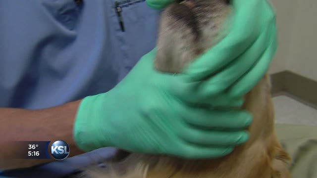 SALT LAKE CITY -- At Sugar House Veterinary Hospital, technician Rick Dobson delivers a dog named Sky to Ken Kurtz, another technician from California who is sitting on the floor in one of the clinic rooms.