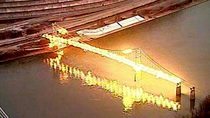 The 83-year-old bridge was one of four similar bridges built across the Ohio River in 1929 and had wire cables suspending its 1,255-foot span.