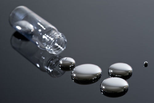 Breathing mercury vapors can harm the nervous system, lungs and kidneys. Mercury vapors can pass easily from the lungs to the bloodstream. Elemental (also known as metallic) mercury, the shiny silver-white liquid found in some thermometers and switches, is most dangerous when inhaled and must be handled with care.