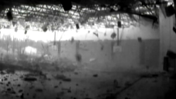 Surveillance cameras inside Henryville Junior Senior High School were rolling as the storm destroyed their building.