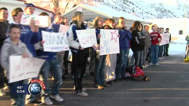 Tuesday morning, the halls at Tintic High School were quiet and empty. But outside the school and down Eureka's Main Street more than half of the 109 students enrolled at the school walked out in support of the school's principal Jaren Wadsworth, whose contract was not renewed.