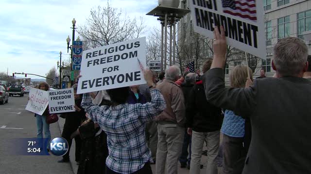 "We are here to demonstrate that our government cannot force (people) to violate their conscience," said the Rev. Darin Lovelace of St. John's Anglican Church in Park City.