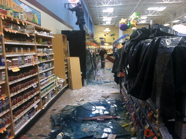 Damage to a Harmon's grocery store in Draper was significant, with the broken glass lining the frozen food isle closest to the windows.
