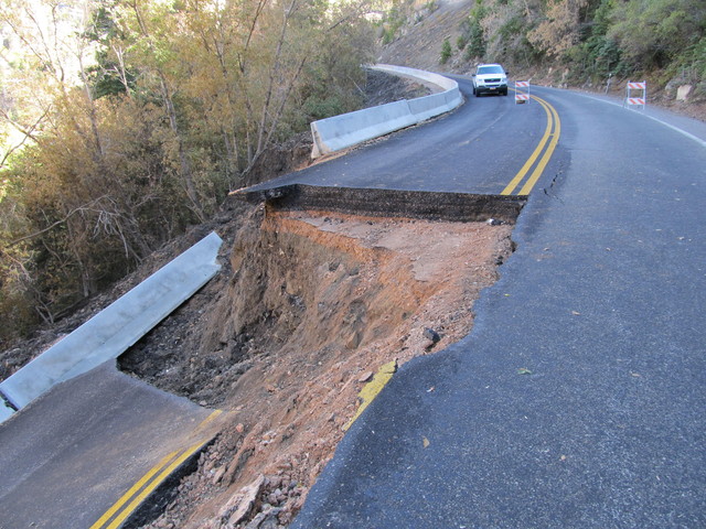 Some 1.5 million cubic yards of material slid down a steep ravine Oct. 8, destroying nearly a quarter mile of the highway.