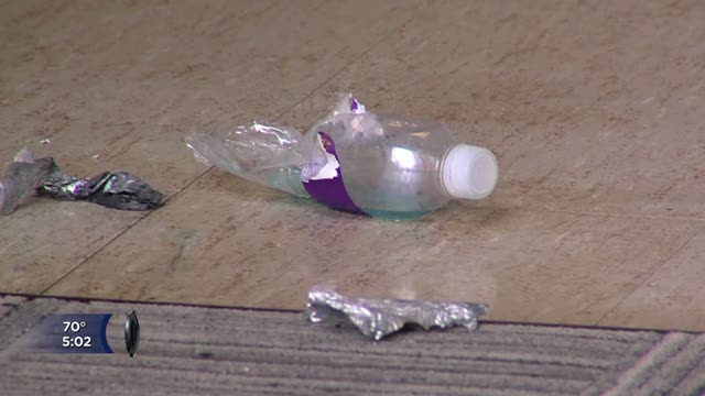 The incident began about 8:20 a.m. when a water bottle filled with household chemicals exploded, said Koehn. While no one was hurt, the loud boom was heard by many people.