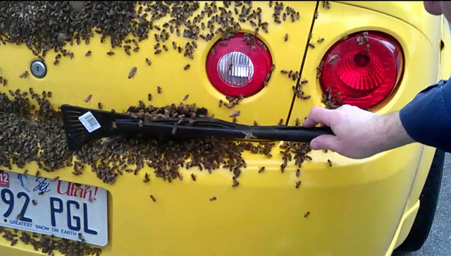 "Once he got the queen into the portable hive that he brought with him, then he set it down next to the Cobalt," Key said. "So they all started migrating from the car into that thing."