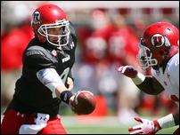 Jordan Wynn, a junior who is back for his fourth year as the starter, was the rustiest of the bunch. Back from yet another shoulder surgery, this time on his left (non-throwing) arm, Wynn connected on 8-of-11 passes for 124 yards, but also threw two interceptions and fumbled a snap. He was accountable for all three Utah turnovers on the day.