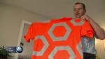 What Grimshaw came up with is a bright orange shirt with large, reflective, honeycomb/hexagon-type patterns on it.