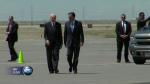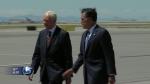 Utah Sen. Orrin Hatch met the presumptive Republican presidential nominee outside TAC Air at the Salt Lake City International Airport. They strolled down the tarmac chatting and laughing. Neither took questions from local media gathered at the terminal.