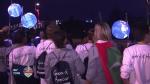 Organizers said the cauldron would be moved Sunday night to the corner of the stadium where a giant bell tolled during the show.