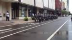 The protesters had a two minute moment of silence in honor of the delegates in the convention center holding strong to the Ron Paul message. The group marched throughout the streets in an effort to gain support and to get in front of the convention center. Along the way, the group multiplied before setting up in front of a secured perimeter by the Tampa Bay Times Forum.