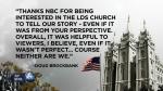 Kim Woodbury commented on facebook: "Overall, I thought Rock Center with Brian Williams was very fair and balanced. While I wish they had treated some aspects of my faith more respectfully, I appreciate their effort to help people better understand who we are and what we believe."