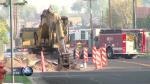 LAYTON — More than two hours after a construction crew hit a four-inch natural gas line in Layton, the line was clamped down and the leak was stopped.