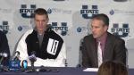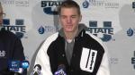 Sitting between his dad and trainer, Berger talked to the media Saturday afternoon. He said he was tired but glad to be out of the hospital, in time to cheer his team on.